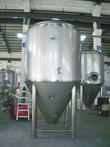 我廠設(shè)計(jì)的發(fā)酵罐為標(biāo)準(zhǔn)式罐型,這種罐型當(dāng)公稱容積在6m以下時(shí)罐采用夾套式。發(fā)酵氣的冷卻或加熱,均由夾套來完成。公稱容積為6m以上時(shí),發(fā)酵氣的冷卻由立式盤管來擔(dān)負(fù),在罐內(nèi)盤管的連接方面我們作了改進(jìn)。這主要避免在罐體上多開孔,開成死角。這種連續(xù)方式在實(shí)際使用中得到滿意的效果。